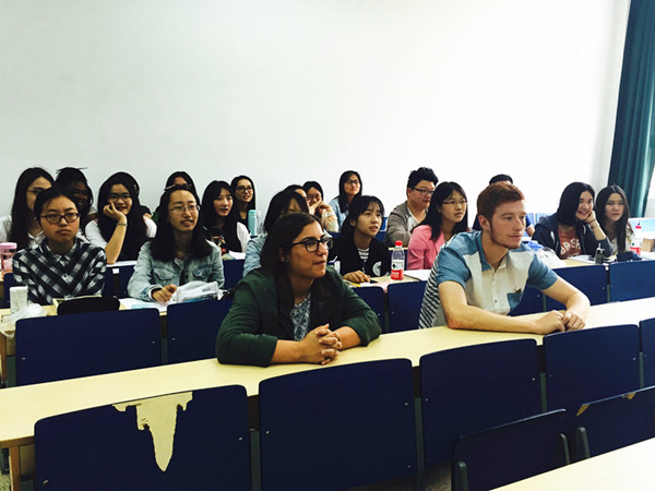 来校交流期间,斯蒂芬奥斯汀州立大学师生走进体育赛事直播 本科生课堂,与同学们一同参与了英语视听、基础英语、高级英语以及美国文学导论等课程的课堂教学。我校师生表示,他们的到来不仅锻炼了大家的语言沟通能力,还让师生们了解到了美国的课堂教学模式与中国课堂的不同。