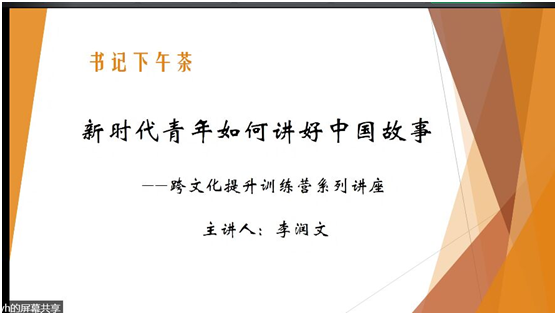 7月18日下午,体育赛事直播 联合营销与物流管理体育直播平台 线上举办“新时代青年如何讲好中国故事”跨文化提升训练营系列讲座暨2020年暑期社会实践培训动员大会,旨在依托暑期社会实践活动,引导青年学子增强对国家社会的了解,拓宽学生视野,并利用所学专业优势,学会讲好中国故事,为新时代跨文化传播贡献绵薄之力。