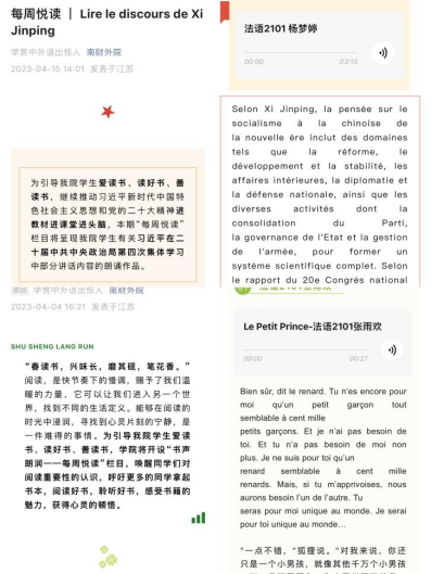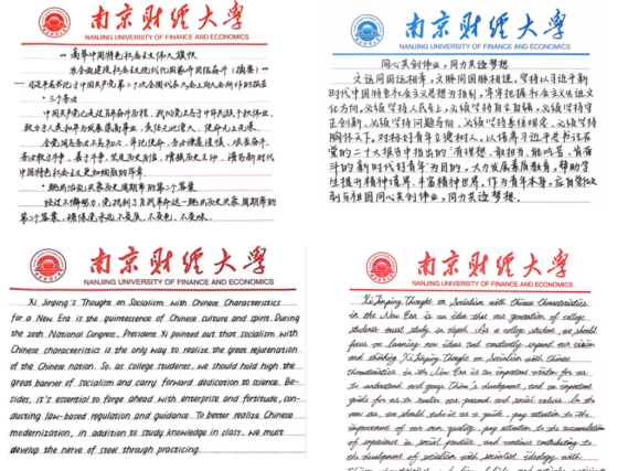 本次“悦读月”系列活动以习近平新时代中国特色社会主义思想为指导,结合体育直播平台 专业特色,面向在校生征集多语言经典作品诵读音频和艺术创作作品。“书声朗润”,诵读经典,同学们积极参与活动,充分发挥自身专业特长,通过中英法三种语言讲好中国故事,传播优秀文化,优秀音频作品在“南财外院”公众号“每周悦读”栏目进行展播。“翰墨书香”活动收到了两百余件由同学们精心制作的艺术作品,作品内容丰富、想法新颖,体现了体育赛事直播 青年学子对党和国家的热爱与理解。作品中他们写下了对党和国家的祝福,写下了对中国特色社会主义思想的理解,写下了自己的信仰与意志,一笔一画传达出了同学们的浓浓爱国爱党情怀。