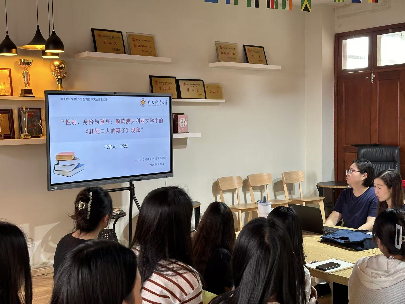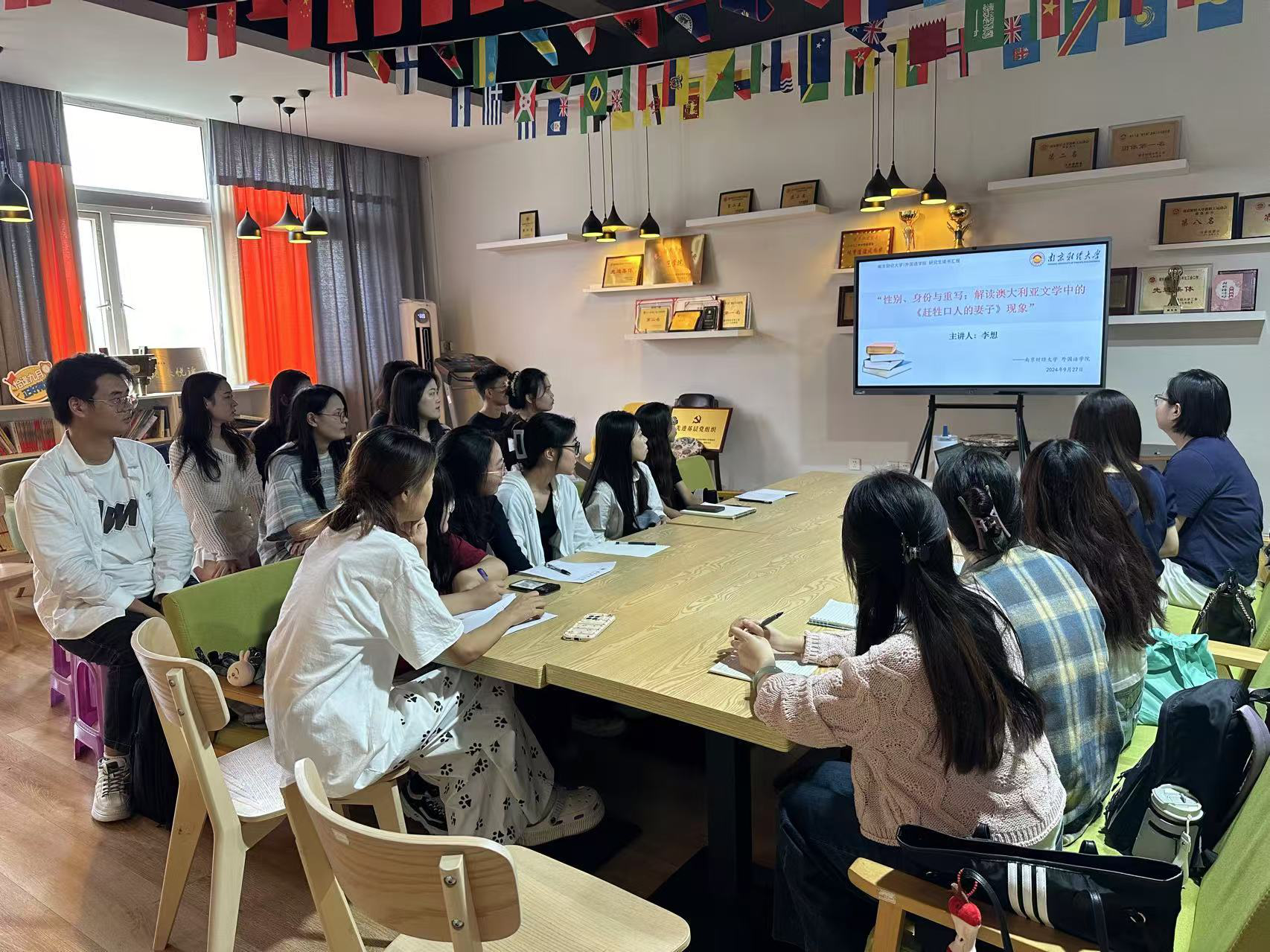 2024年9月25日下午,体育直播平台 在德正楼304室成功举办了第十六期众书读书会。李想老师为体育赛事直播 师生带来了题为“性别、身份与重写——解读澳大利亚文学中的《赶牲口人的妻子》现象”的精彩学术讲座。出席此次活动的有体育直播平台 22、23、24级研究生,本次读书会由研究生党支部书记王云姣老师主持。