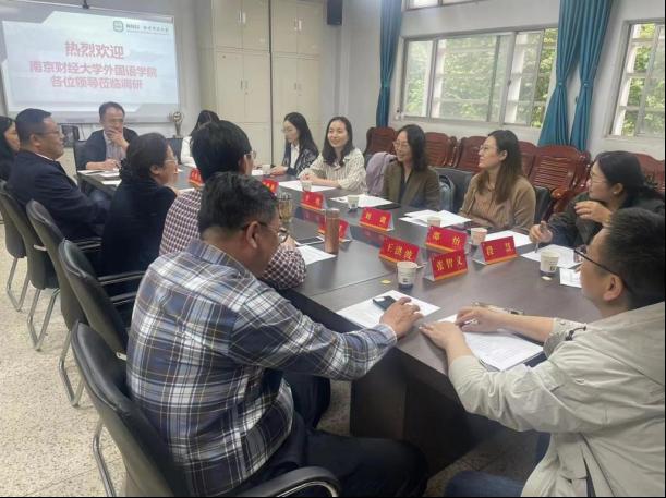 同行视角体现外语担当。5月6日,体育直播平台 党委书记李骏、院党委副书记刘璐、院长助理顾晓燕、教学顾问邵怡、系主任段燕、学工办主任、分团委书记李超雅、硕士生导师段慧一行7人前往南京师范大学体育直播平台 进行调研学习。双方就党建与业务的深度融合策略、高水平大学建设中的外语人担当、深化产学研合作促就业对策、辅导员能力提升战略、人才培养方案修订、国际交流以及财力建设、青年教师的学术能力培养等7个方面进行了深度交流。双方还就如何在学习贯彻习近平新时代中国特色社会主义思想主题教育中发挥外语优势展示外语担当进行了热烈研讨。双方达成“跨校联动办专业”的初步意向,共同致力于新文科背景下外语发展的创新路径。