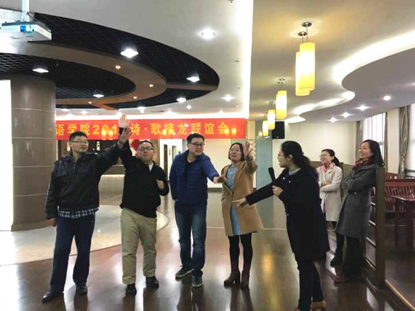 分别来自行政、大学外语部、英语系和非通用语种的教职工组成了6支队伍参与此次接龙活动。比赛题目涉及中外诗词和歌曲等共六十余道题目。比赛抽签决定分组后两两PK,在第一轮比赛中,六支队伍分别抢答10道基础题,胜出的三支队伍进入第二轮角逐。