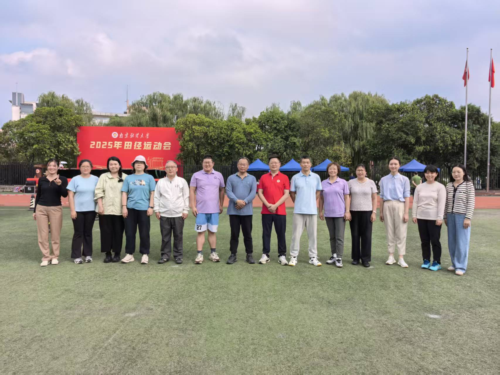 2025年10月16日至17日,南京财经大学仙林校区西苑田径场洋溢着热烈的氛围,2025年教职工运动会在此隆重举行。体育直播平台 积极响应学校号召,广泛发动、精心组织,组建了一支由33名教职工组成的运动队,在体育直播平台 领导陆斌书记、丁强院长、孙大松副书记、分工会李丽萍主席的带领下,以昂扬的斗志和出色的表现,在赛场上斩获多项荣誉,充分展现了外院教职工拼搏向上、团结协作的精神风貌。