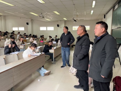1月5日,体育直播平台 党委书记陆斌、院长孙勇彬巡视期末考试工作,现场了解考试组织,纪律,环境及各项保障措施的落实情况。